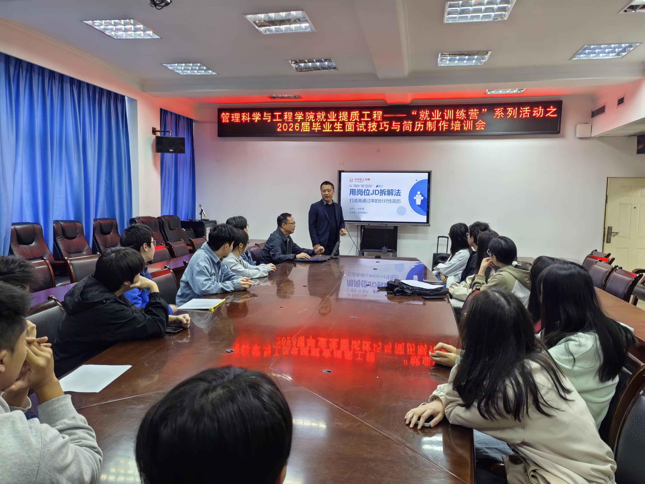 培训伊始,陈清和深入剖析了简历的重要作用。他指出,简历是毕业生与用人单位的首次“对话”,是求职者展示自身优势、能力和潜力的关键工具。一份优秀的简历能够迅速吸引招聘者的目光,为求职者赢得面试机会,是开启职业大门的重要“敲门砖”。在竞争激烈的就业市场中,简历的质量直接关系到毕业生能否脱颖而出,获得心仪的工作。