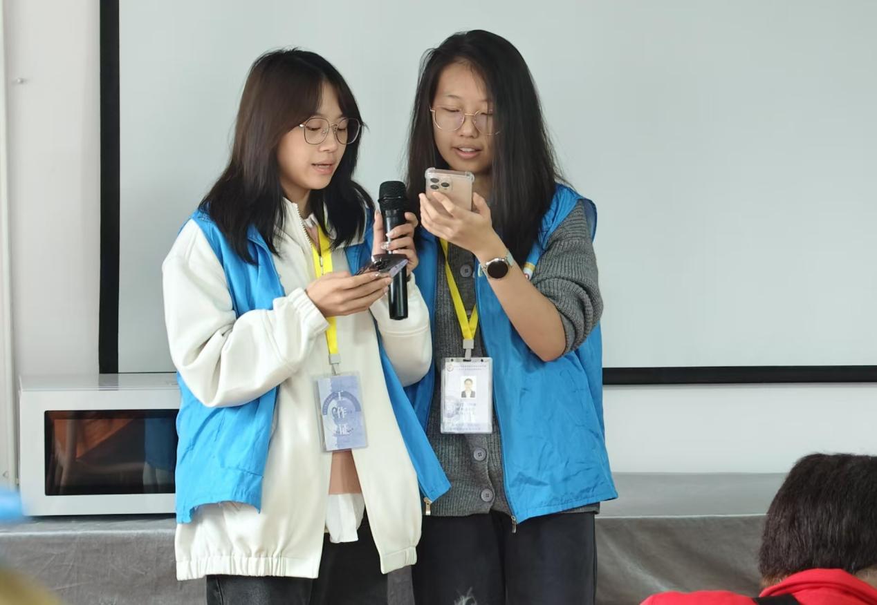 活动当天,志愿者们从学校出发,辗转地铁3号线与2号线,历时近一小时抵达养老服务中心。一进门,老人们的笑容便让整个空间暖意融融。志愿者们精心策划的各类活动随即拉开帷幕:开场时《在希望的田野上》的歌声活力飞扬,瞬间点燃现场氛围,快乐的动感节奏感染着每一位老人;《月亮下的中国》的朗读声情并茂,带老人们回望过去,那些峥嵘岁月仍旧历历在目;手势舞《桃花朵朵开》更是让老人们忍不住跟着律动起来,现场欢声笑语不断;小品《养老院小剧场》的诙谐表演,更是让老人们乐开了怀。