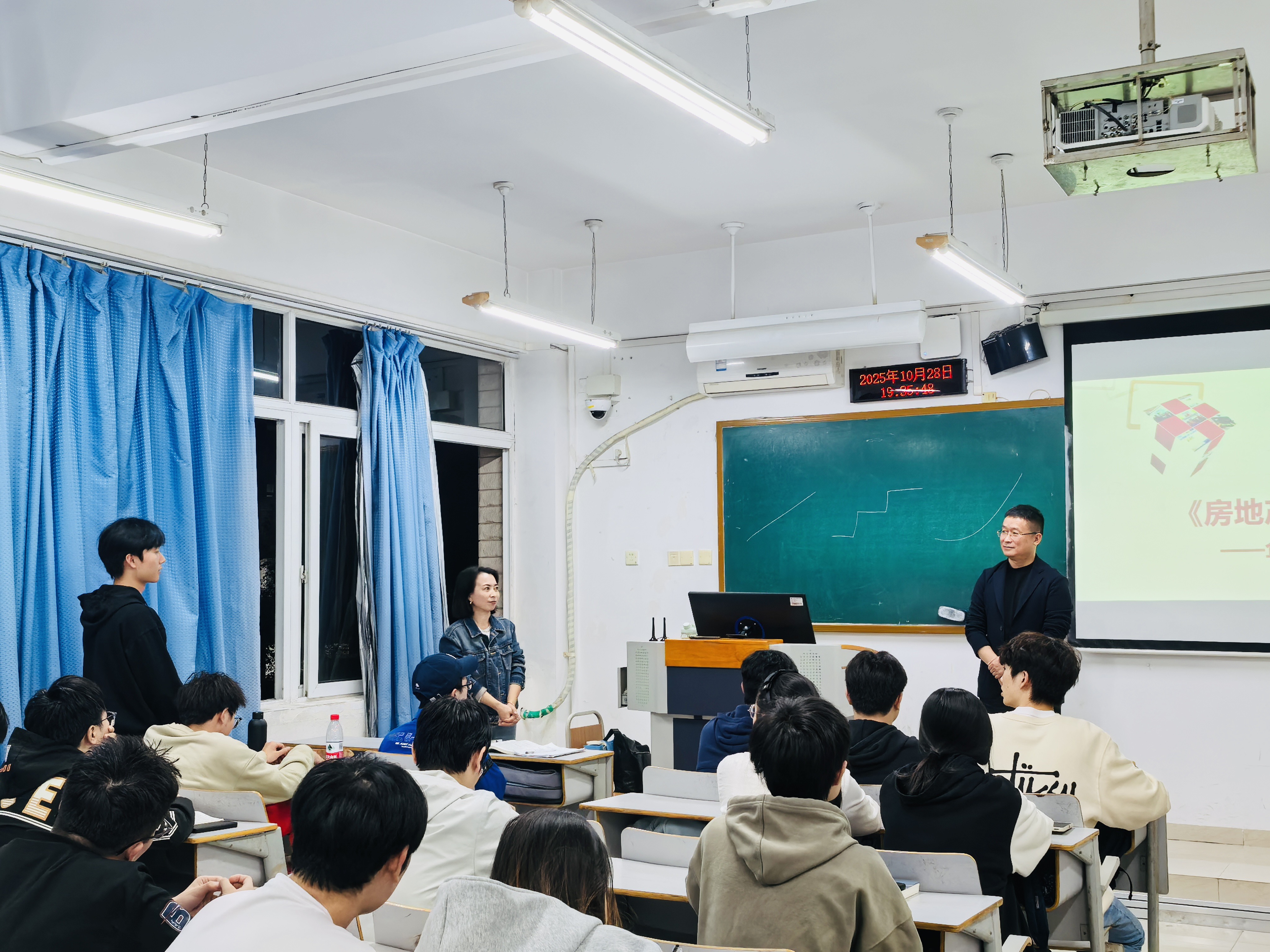 2025年10月28日晚7时,必赢线路检测3003工程管理专业肖艳教授讲授的《房地产估价》课程“企业专家进课堂活动”顺利进行。本次课程特邀重庆同诚房地产土地资产评估有限公司副总经理、估价行业专家甘光辉与经理瞿敬走进课堂,两位校外专家为师生们带来了一场精彩且富有深度的行业分享。