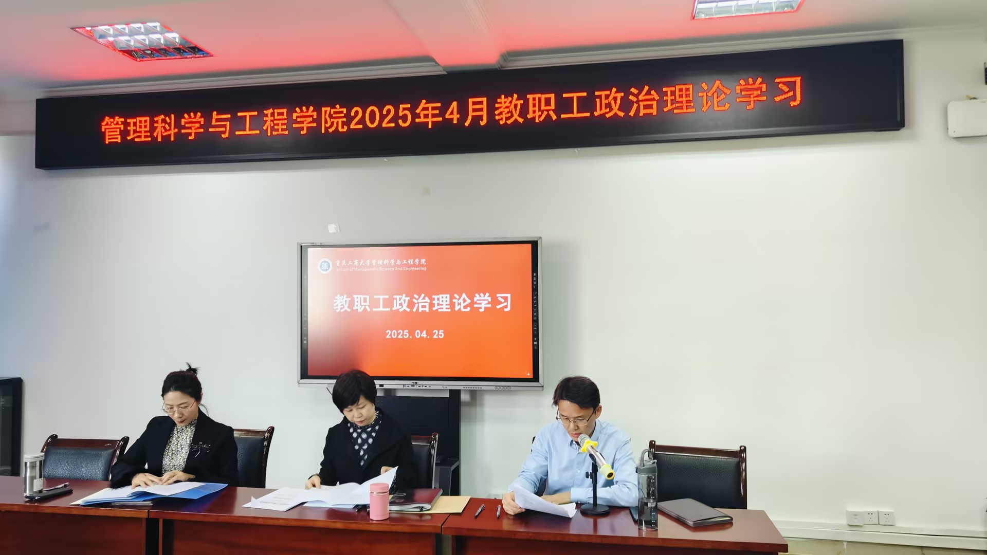 4月25日中午12:40,必赢线路检测3003在80707会议室召开全院教职工大会暨集中政治理论学习会。学院党委副书记、院长黄钟仪及班子成员出席,全体教职工参会。