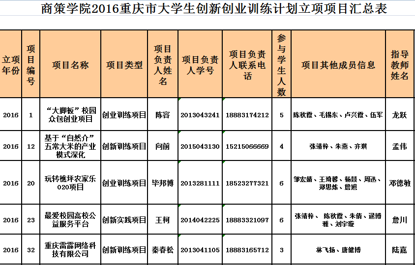 近日,重庆市教委组织开展了2016年重庆市大学生创新创业训练计划项目评审申报工作,在市内各校申报推荐的基础上,进行了资格审查和公示。