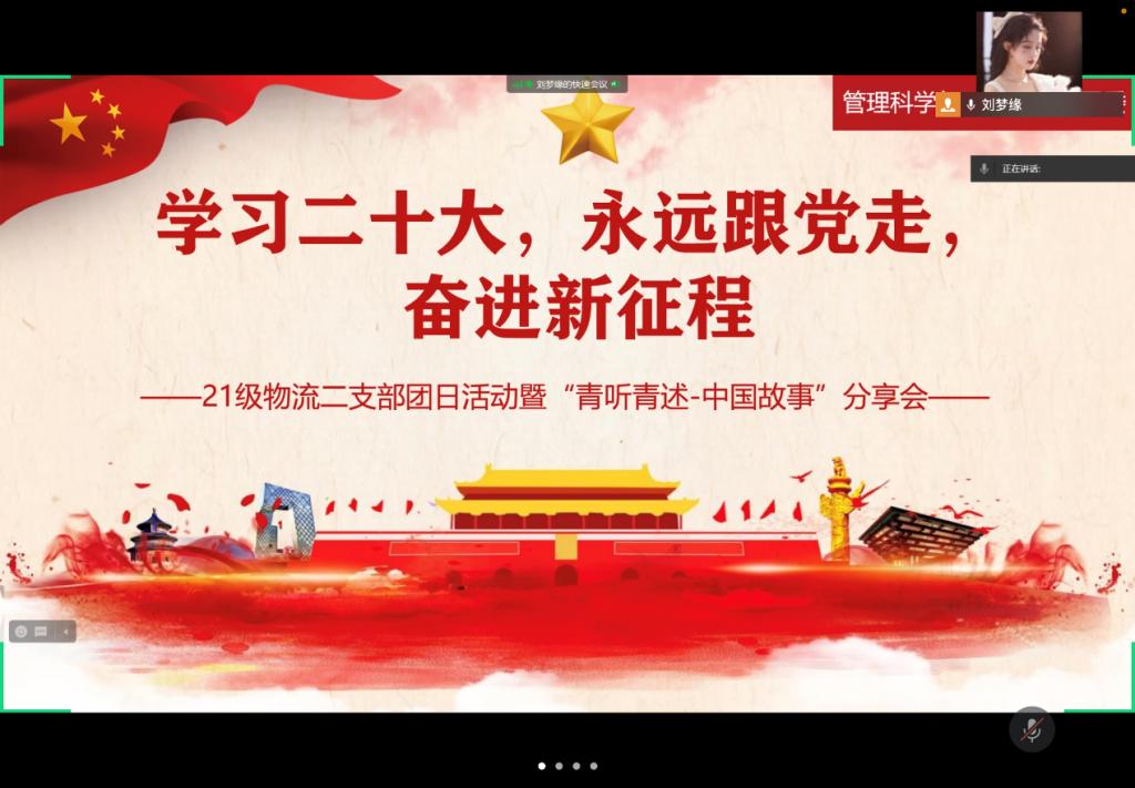 各团支部以领学、宣讲、学习心得分享、党史问答、红歌竞猜,“青听青诉-中国故事”分享等多种形式推进青年深入理解党的二十大精神,推进青年更加深刻领悟“两个确立”的决定性意义,更加紧密地团结在以习近平同志为核心的党中央周围,不断增强“四个意识”、坚定“四个自信”、做到“两个维护”,将党的二十大精神扎实贯彻落实到学习工作中,以更加开放的思路和胸襟,研究新情况、解决新问题、推动新发展,做担当民族复兴大任的时代新人。