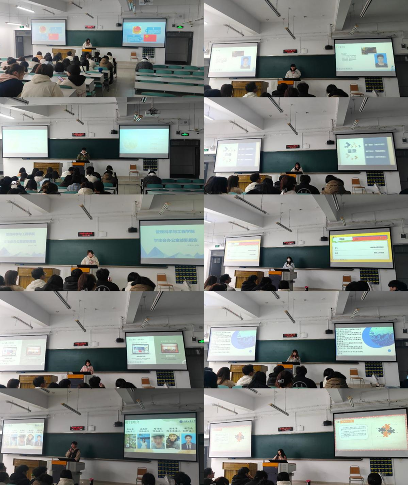 会议伊始,由各部门负责人代表对本部门工作进行汇报,总结部门在本学期所主办的活动以及活动中的成效与不足,并对未来的工作进行了规划,使学生干部明确了未来发展的方向与目标。