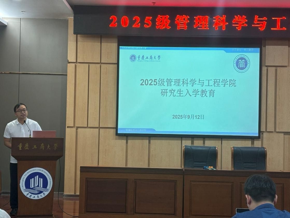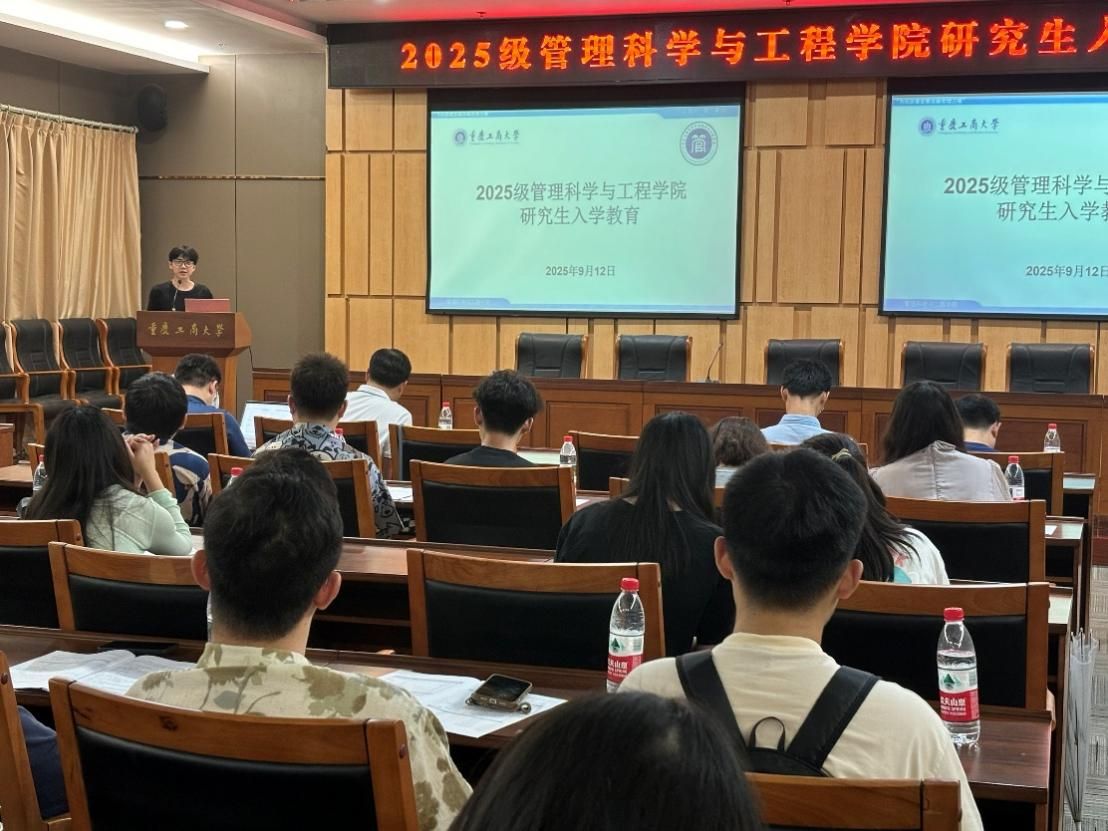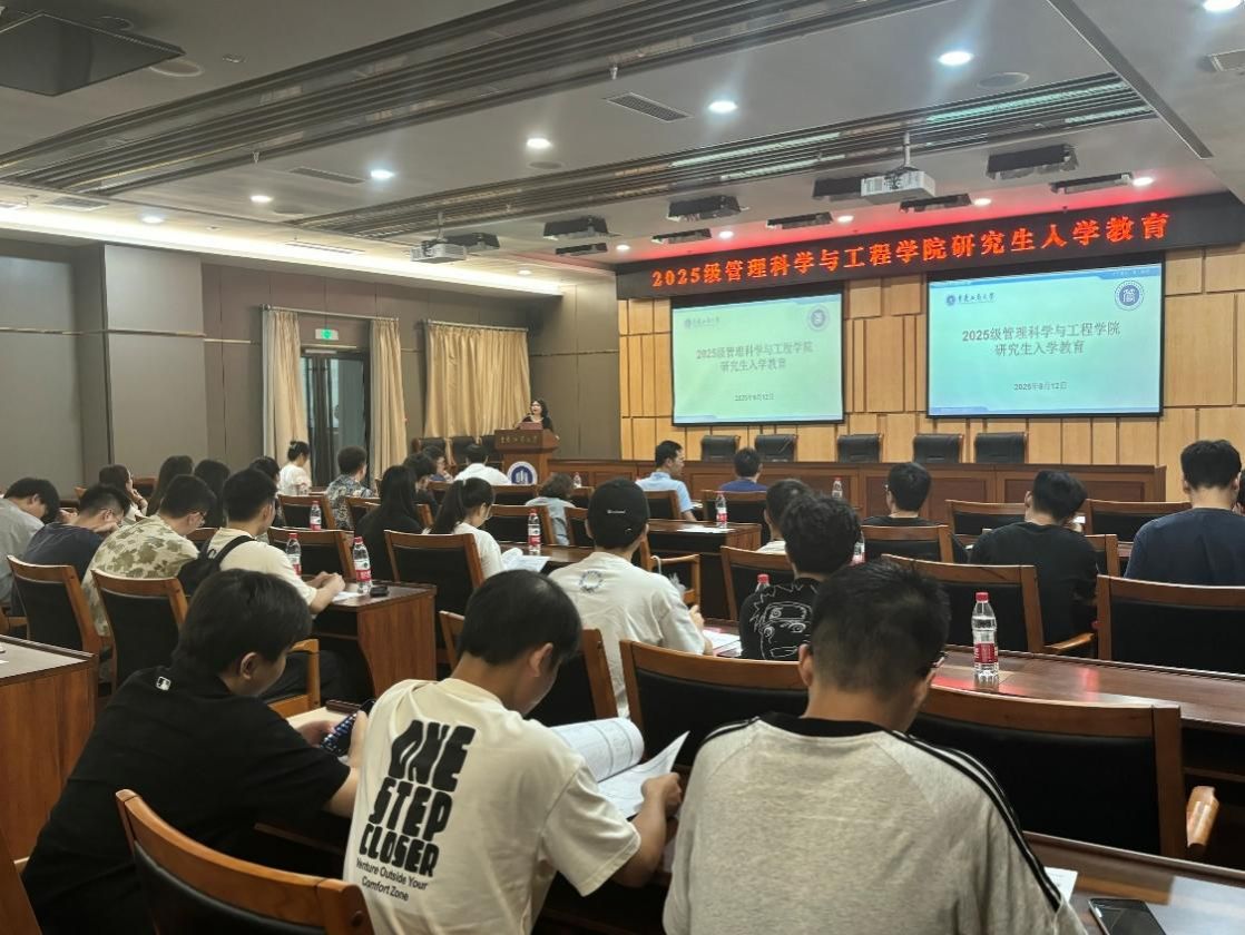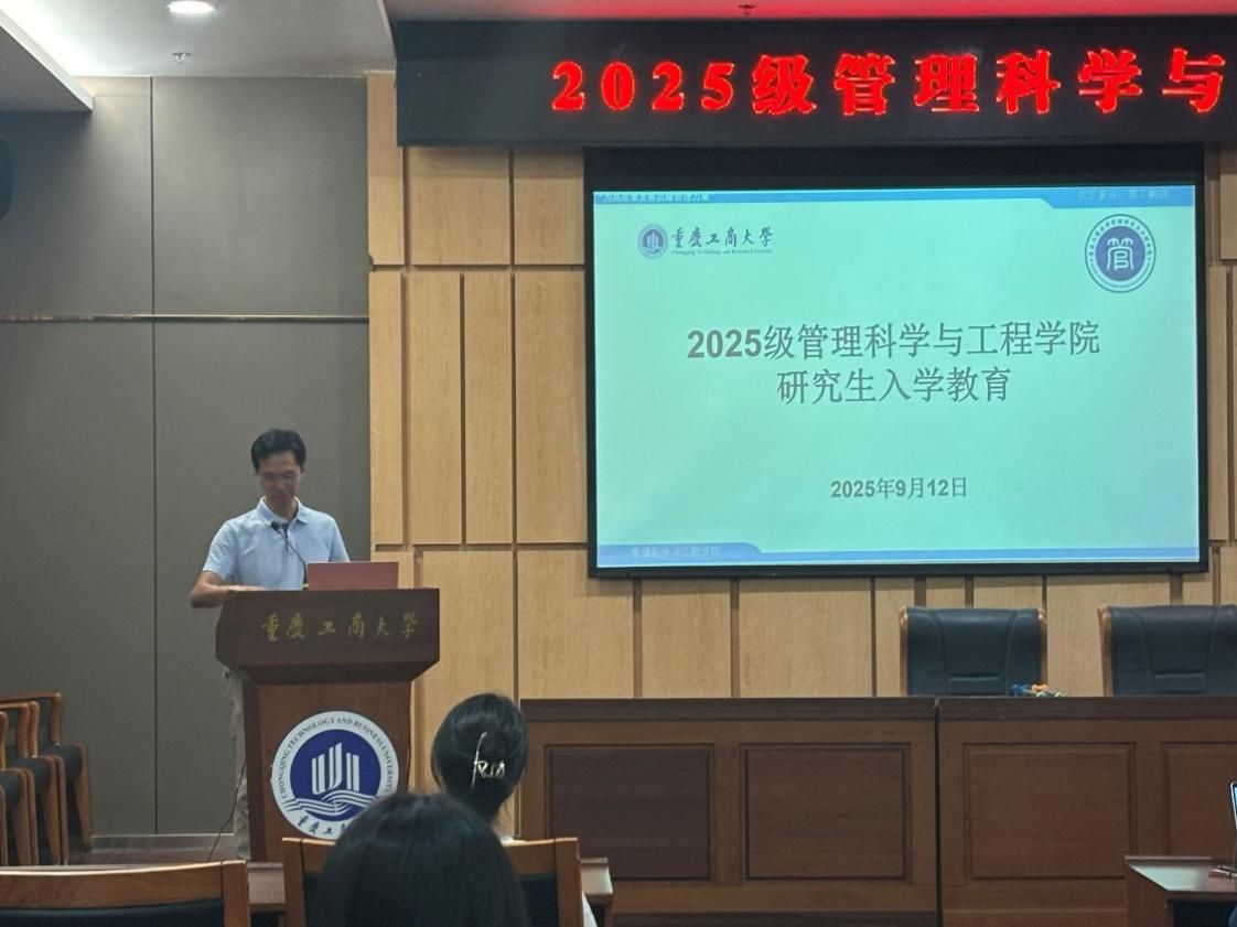 2025年9月12日下午,我院2025级研究生新生入学教育系列活动在图书馆大剧场、第一会议室举行。活动由副院长陈久梅主持,学院党委书记王婷、院长黄钟仪、教授周愉峰、教授胡森森、副教授杨家权、党支部书记游薇、MEM中心主任方新、教学秘书唐真涵、新生辅导员邰俊英以及2025级全体研究生参加。本次入学教育以“开学典礼”为起点,衔接“研究生学习生涯指导”和“研究生专业学习指导”两大核心模块,为新生们快速适应研究生阶段学习生活提供全面的指导。