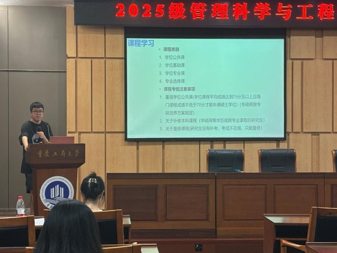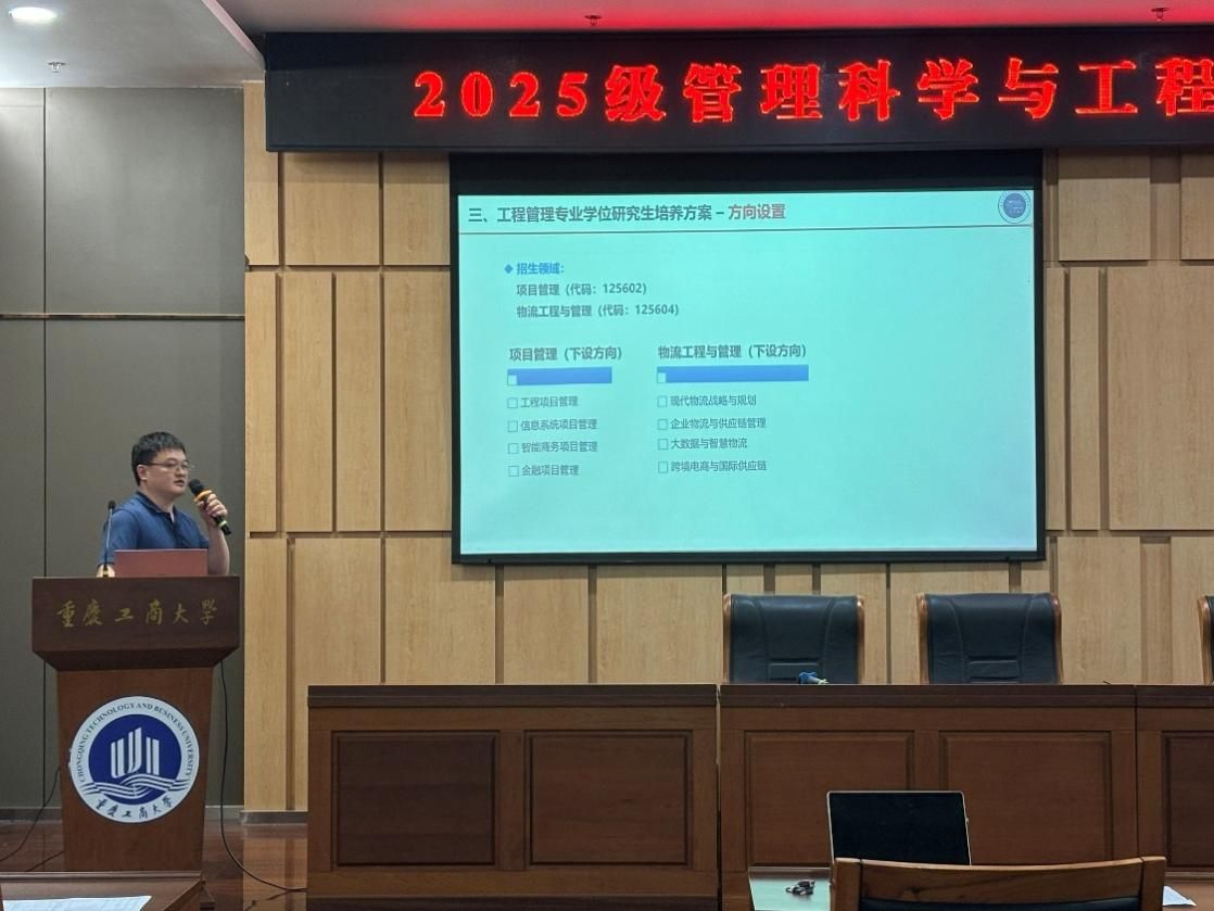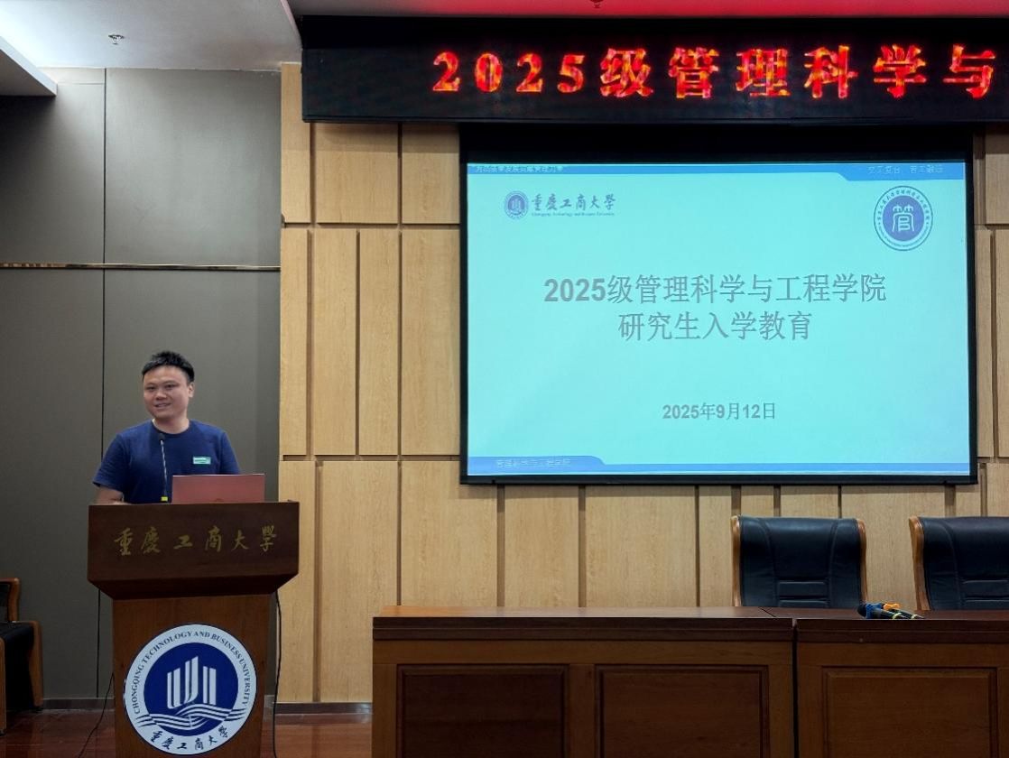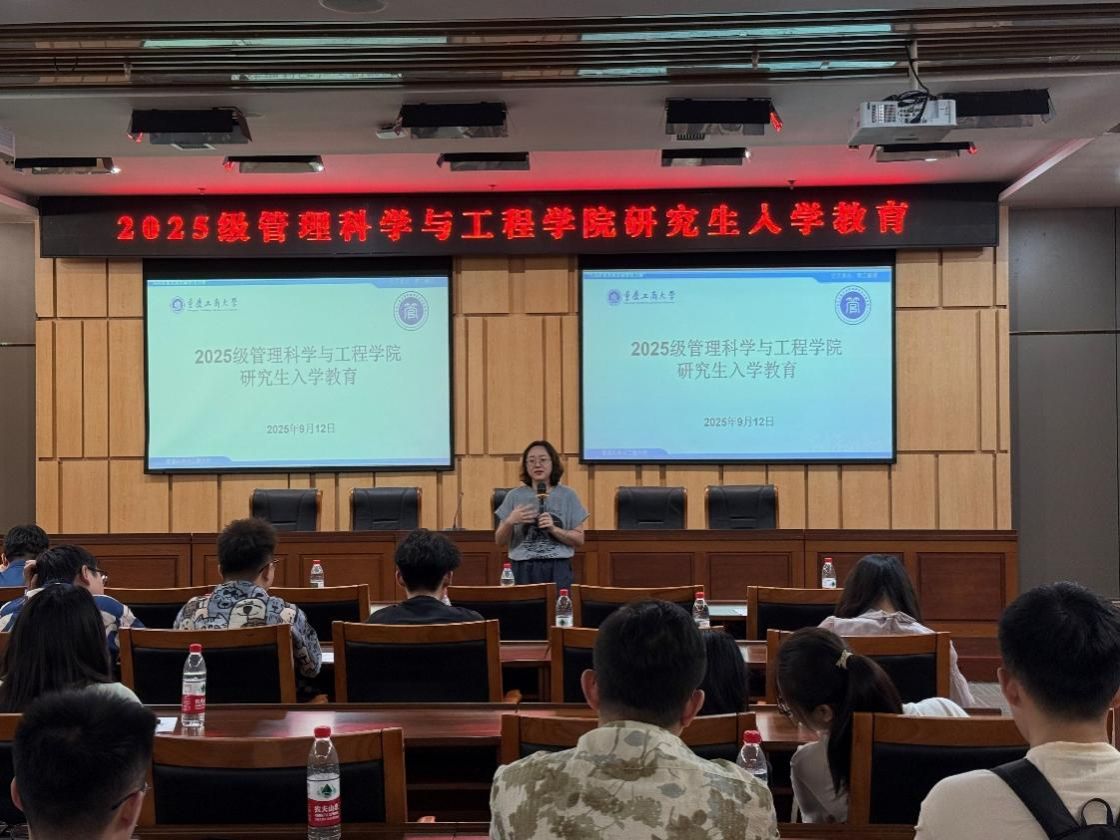 2025年9月12日下午,我院2025级研究生新生入学教育系列活动在图书馆大剧场、第一会议室举行。活动由副院长陈久梅主持,学院党委书记王婷、院长黄钟仪、教授周愉峰、教授胡森森、副教授杨家权、党支部书记游薇、MEM中心主任方新、教学秘书唐真涵、新生辅导员邰俊英以及2025级全体研究生参加。本次入学教育以“开学典礼”为起点,衔接“研究生学习生涯指导”和“研究生专业学习指导”两大核心模块,为新生们快速适应研究生阶段学习生活提供全面的指导。