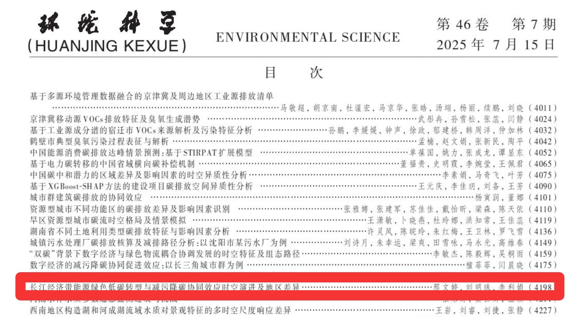 必赢线路检测3003必赢线路检测3003信息管理与大数据应用系邢文婷副教授与其指导的研究生刘明珠和李利娟,在环境科学与资源利用领域内的EI卓越期刊《环境科学》,2025年第7期,发表题为“长江经济带能源绿色低碳转型与减污降碳协同效应时空演进及地区差异”的学术论文。《环境科学》是环境科学技术及资源科学技术类的核心期刊,被Ei Compendex,MEDLINE,Scopus等多家国内外检索系统和数据库收录。曾荣获“新中国60年有影响力的期刊”称号,2002-2024年22次荣获“百种中国杰出学术期刊”称号,2012-2024年12次荣获“中国最具国际影响力学术期刊”称号,2008-2023年连续6届荣获“中国精品科技期刊”称号,2015-2018年连续3届荣获“中国期刊数字影响力100强”称号,8次荣获中国科学院科学出版基金,2019年入选中国科技期刊卓越行动计划,2024年入选中国科技期刊卓越行动计划二期中文领军期刊项目,为2025年中科院大类分区二区期刊,影响因子为6.137。